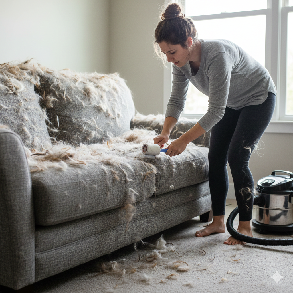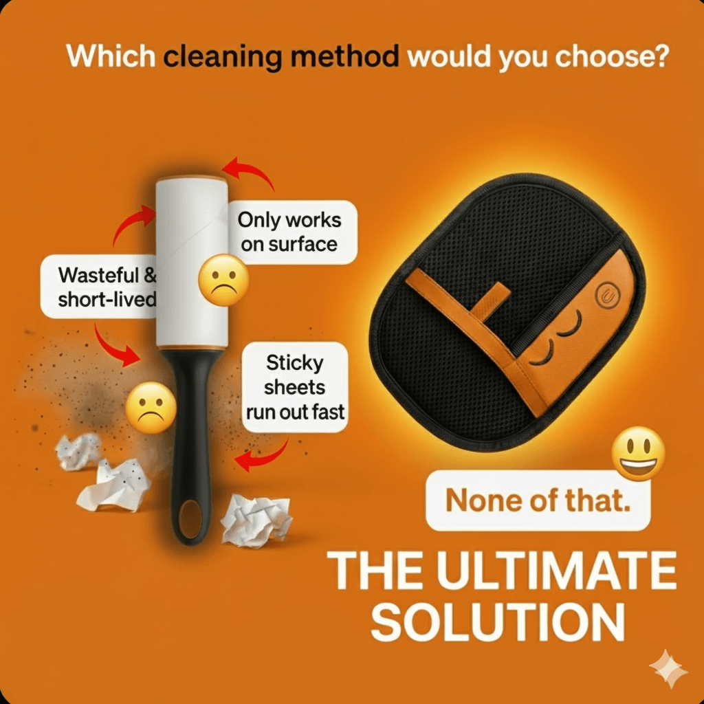 - Vacuum can't lift deep-embedded fur stuck in fabric - Lint rollers waste money and barely work - Hair clings to sofas, clothes, carpets & car seats - Cleaning takes too long and never feels “fully clean”
